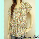 最終値下げ 小花プリント ブラウス カットソー デコルテフリル フラワー ウエストマークデザイン チュニック