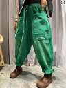 ワイド パンツ レトロ エスニック ボヘミアン コーデュロイパンツ 大きめサイズ 春秋 ゆったり カジュアル シンプル スポーツ アウトドア ホームウェア レディース