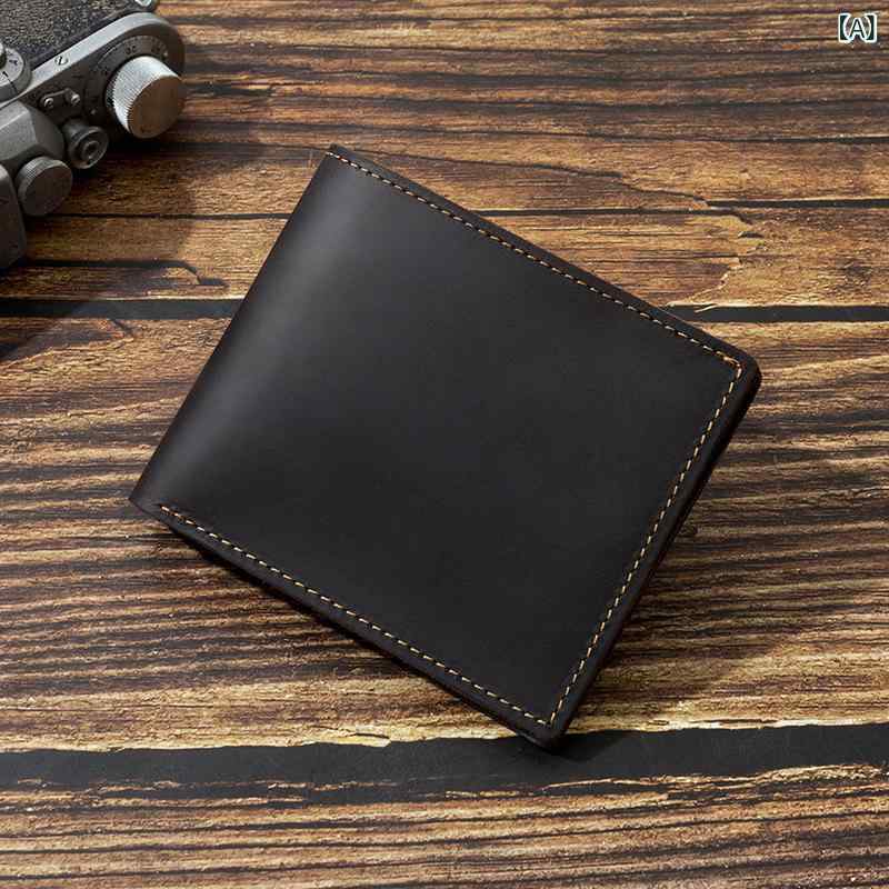クロス ボーダー クレイジーホースレザーショートウォレットメンズ本 革 カード ホルダー多 機能 ビジネス第 一層 牛革 マルチカードスロットウォレット