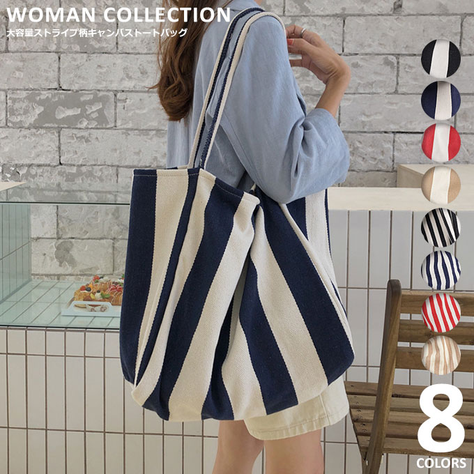 トートバッグ レディース キャンバス 大きめ ショルダートートバッグ 大容量 A4 軽量 ストライプ ボーダー マリン キャンバストートバッグ ショッピングバッグ マザーズバッグ カジュアルバッグ 帆布バッグ 肩掛け かわいい