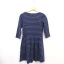 【中古】ワンピース 七分袖 ボーダー フレアー 丸首 ひざ丈 F グレー ネイビー /C レディース 【ベクトル 古着】 220224