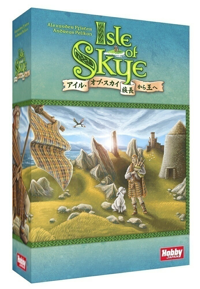 スカイ島(アイル・オブ・スカイ)へようこそ!やわらかな砂浜、なだらかな丘、美しい山脈……スコットランド北西部にあるこの島の心を打つ風景は見る者を圧倒します。しかし何百年も前は今のような平和な島ではありませんでした。この島では5つの部族が覇権をめぐって争い、領地を奪い合っていました。『アイル・オブ・スカイ:族長から王へ』では、プレイヤーは5つの部族の1つを率いて、領地を巧みに広げ、不要な土地は大金で売り払い、交易で儲けて、勝利点を獲得していきます。最も多くの勝利点を得たプレイヤーがスカイ島の王になることができるのです。はたしてあなたは小さな部族の長から島の王になることができるでしょうか?スマートなルールで簡単に遊べ、独特なオークションと、ゲームの度に目的を新たにする可変的な得点のシステムが評価されている話題作です。内容物ゲームボード1枚得点タイル16枚地形タイル73枚地形タイル「城」5枚ついたて6枚得点マーカー5個布袋1個ルールブック他(C)2016LookoutGmbHデザインAndreasPelikan,AlexanderPfisterプレイ時間約60分プレイ人数2-5人対象年齢8歳以上形態:アナログゲームメーカー型番:4981932022802商品コード:4981932022802▼商品登録日:2020年12月21日【ご注文前に必ずお読みください】倉庫取寄せ商品の注意事項・こちらの商品は、ご注文をいただいてから保管倉庫に在庫の確認を行い商品を確保します。・在庫の確認、確保が出来てからご注文の確定処理をおこないます。・商品が保管されている倉庫から出荷元に商品が入荷するまでの期間は、通常ご注文をいただいてから1週間から10日ほどとなります。・在庫は流動的なため商品をお手配できない場合がございます。その際はご注文をお取消しさせていただきます。