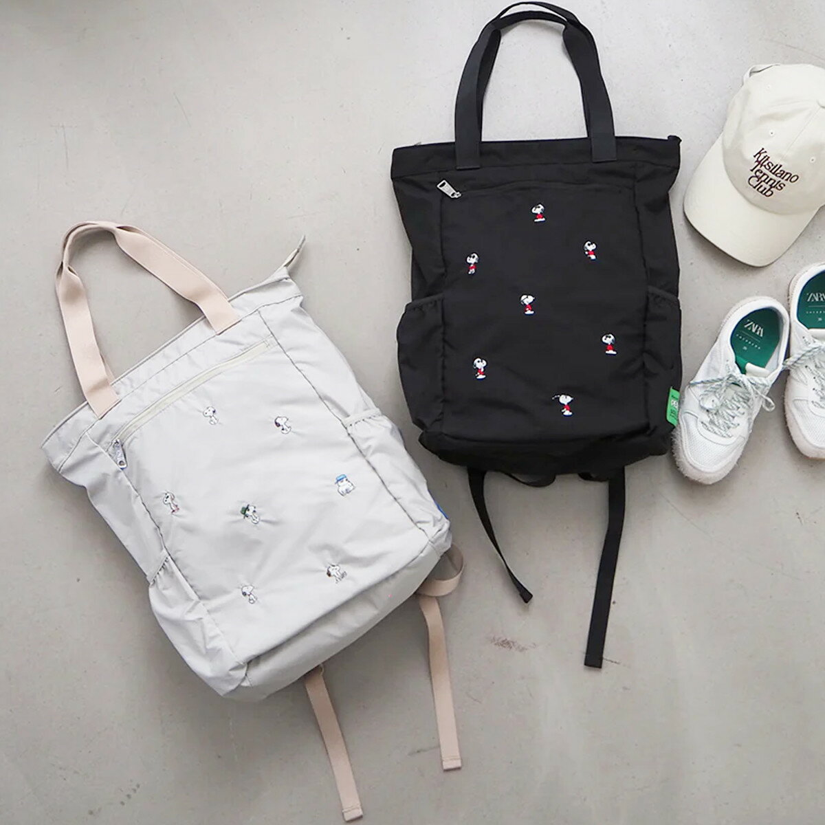 スヌーピー グッズ バッグ レディース ポケッタブル2WAYリュック 10941 SOLEIL ブランド PEANUTS サブバッグ リュックサック デイパック 旅行 買い物 収納 ポケット付き 持ち運び 便利 刺繍 ヘミングス