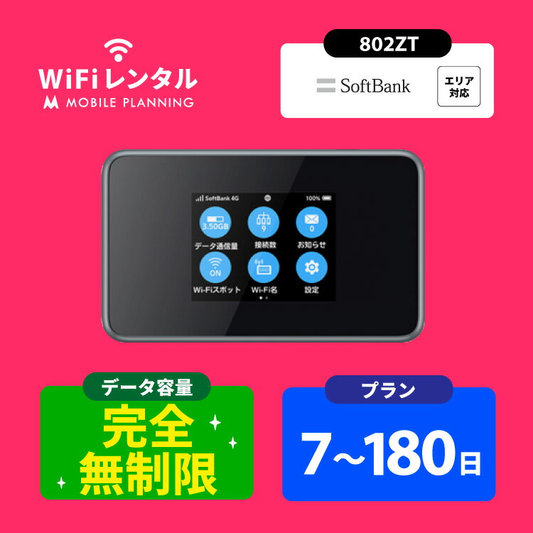 送料無料 WiFi レンタル 完全無制限 7日 14日 30日 60日 90日 180日 ポケットWiFi wifiレンタル 無制限 レンタルwifi ポケットWi-Fi ソフトバンク softbank 802ZT 帰省 テレワーク 引っ越し 一時帰国