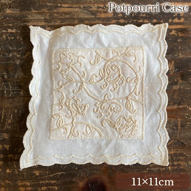 ポプリケース 11×11cm ポプリ袋 香り袋 サシェバッグ フレグランス アロマ ファブリック レース ロココ調 姫系 アンティーク調 インテリア雑貨 ヨーロピアン クラシック 北欧 可愛い コットン刺繍