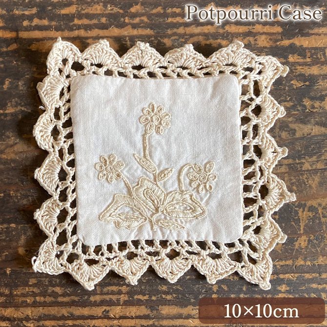 ポプリケース 10×10cm ポプリ袋 香り袋 サシェバッグ フレグランス アロマ ファブリック レース ロココ調 姫系 アンティーク調 インテリア雑貨 ヨーロピアン クラシック 北欧 可愛い コットン刺繍