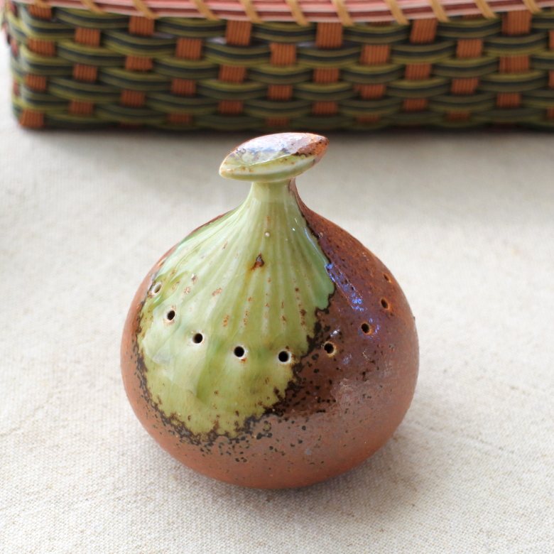 織部釉 ポプリケース 香り漂う 穴あき ケース サシェ 空間 香り モダン 茶色 緑 カフェ 器 皿 陶器 磁器 シンプル おしゃれ オシャレ かわいい カワイイ 北欧 業務用 セラポッケ 国産 瀬戸焼
