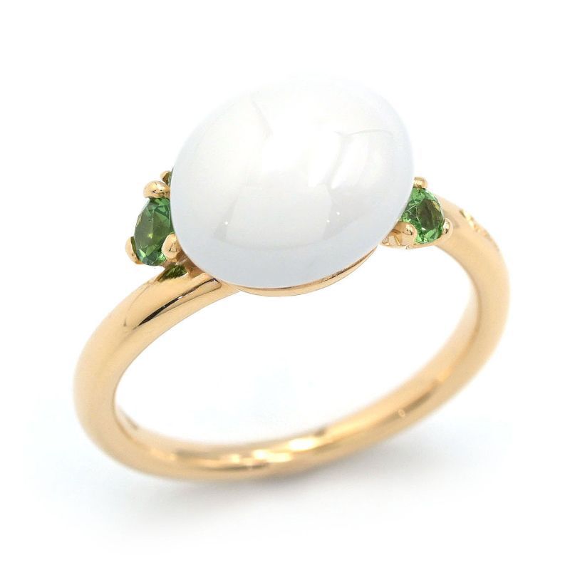 [返品OK] ポメラート カプリリング ホワイトセラミック 10.5号 K18PG ツァボライト グリーン 緑 指輪 ピンクゴールド 地金約5.5g 【中古】【送料無料】
