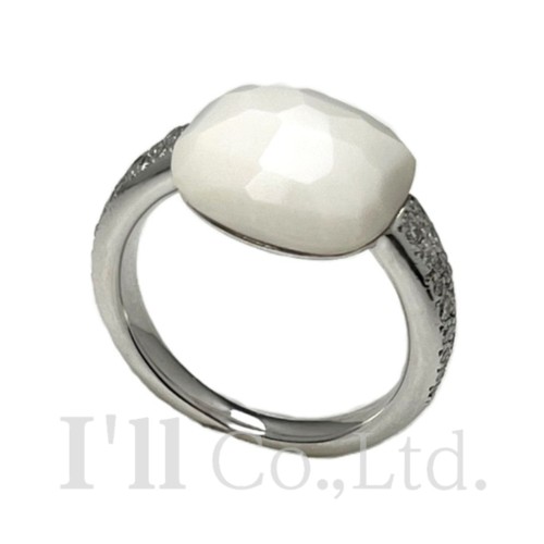 【中古】Pomellato ポメラート カプリ リング 750WG カルセドニー 34Pパヴェダイヤモンド 9号 ブランドジュエリー アクセサリー 指輪 18金 Au750 K18WG 18KT ホワイトゴールド 色石【中古】【76105】