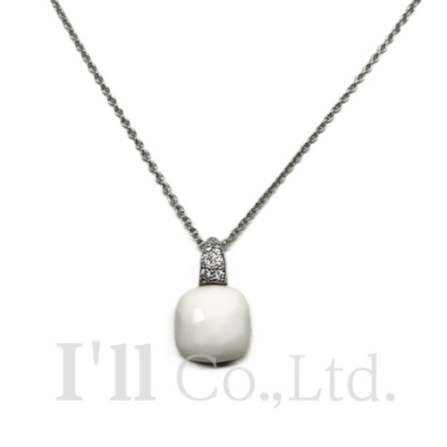 【中古】Pomellato ポメラート カプリ ネックレス 750WG カルセドニー 7Pパヴェダイヤモンド ブランドジュエリー アクセサリー ペンダント K18WG 18KT 18金 Au750 ホワイトゴールド ホワイト 色石【中古】【76106】