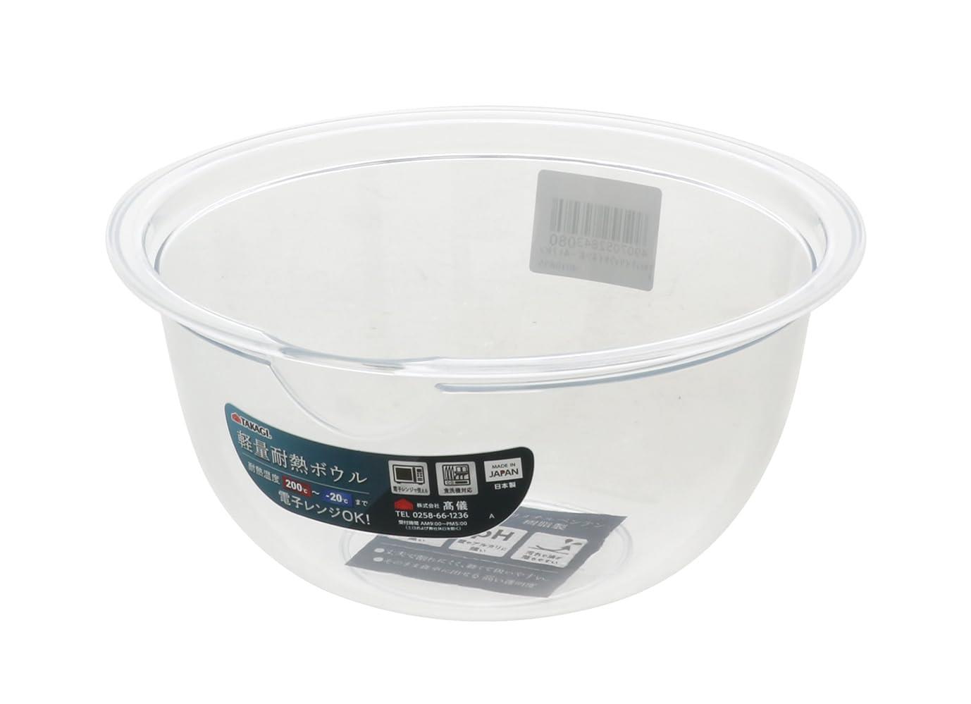 儀(Takagi) 軽量 耐熱 ボウル 21cm 1900ml レンジ対応 プラスチック 食器 食洗機対応 調理器具 料理 割れにくい 汚れにくい 透明 ポリメチルペンテンtpx 日本製 高儀 たかぎ TAKAGI