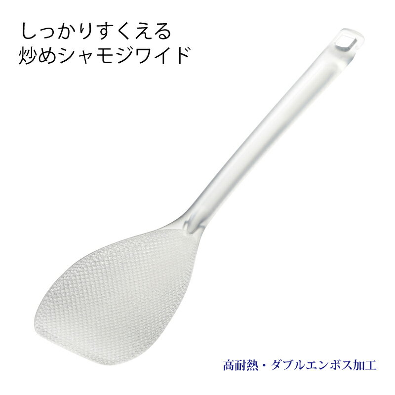 フライパンに使える、ダブルエンボス加工のくっつかないシャモジができました。 パラパラチャーハンもすくいやすい形状で返しやすい先端形状が特徴です。 置いてもへらの部分が浮くので衛生的です。 ◆製品仕様/食洗機OK ◆材質/ポリメチルペンテン(耐熱温度180℃・耐冷温度-30℃) ◆商品サイズ/6.4×28.3×1.9cm 30g ◆台紙サイズ/10.5×1.9×33cm 42g ◆日本製