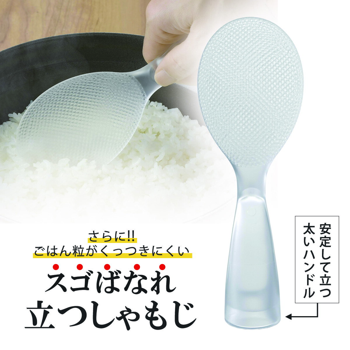 スゴばなれ 立つしゃもじ日本製 TPX ポリメチルペンテン くっつかないごはん粒 米粒 ごはん 白米 しゃもじ ごはんの盛り付け下村企販
