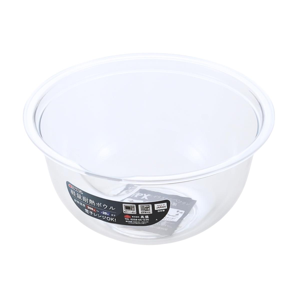 儀(Takagi) 軽量 耐熱 ボウル 21cm 1900ml レンジ対応 プラスチック 食器 食洗機対応 調理器具 料理 割れにくい 汚れにくい 透明 ポリメチルペンテンtpx 日本製 高儀 たかぎ TAKAGI