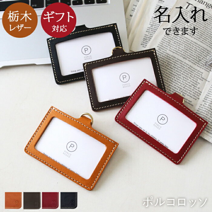 【 名入れ 対応 】ポルコロッソ 横型IDカードホルダー id ホルダー カードケース 免許証入れ 免許証ケース 本革 栃木レザー 日本製 メンズ レディース 男性 女性 ブランド 赤 誕生日プレゼント IDホルダー きれいめ [sokunou]