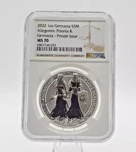 MS70 2022 1 オンス シルバー ゲルマニア S5M アレゴリー: ポロニア - NGC ラウンド コイン スラブ