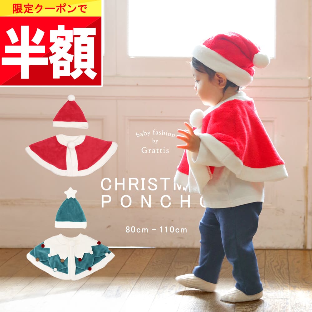 ★ 全品半額だよ〜!! ★【4日 20時】早い者勝ちクーポン♪ 【楽天1位!】 サンタ ベビー ポンチョ クリスマス キッズ 子供 ベビー服 子供服 赤ちゃん 服 女の子 男の子 80 90 100 110 ケープ 子ども こども サンタ帽子 コスプレ コスチューム 着ぐるみ サンタコス サンタ