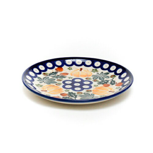 ケーキ皿として取り皿として 16cmの丸い平皿は、最もベーシックなお皿の1つ。ケーキ&スイーツ皿として程よいサイズです。大きすぎないのでテーブルを占領する面積も控えられます。普段の食卓では、副菜を盛り付けるのにも適しています。ギャザリングの際には異なる柄で重ねておいて、ゲスト一人ひとりが自分の柄を覚えておくと間違うことも無く重宝します。 ※KALICHのお皿の裏側の高台部分には、対角線上に窪みが見られます。これは型から外す際につくもので、製造工程上の仕様となります。欠けや不良ではありませんのでご安心ください。KALICHの工房では、機械を一切使わず、型を外すなどの作業もすべては手作業で行われます。KALICH氏によると、手作業の証拠でもあるため、逆に歓迎されているとのことです。 実りの秋がモティーフ 柄は伝統的なピーコックアイと呼ばれるパターンに、楽しい秋の実りのモティーフをプラスした新鮮なオリジナルデザイン。実りの秋をテーマにした温かな雰囲気がこのデザインの魅力となっています。かぼちゃ、どんぐり、栗の実は、筆で色を入れ重ね描きされることにより色の濃淡を付け立体感を持たせ、また白い余白を残すことで光沢感を出すように工夫されています。可愛いだけではないカリヒらしい手の込んだユニーク柄です。 商品詳細 直径 16cm Ceramika Bolesławiecka Kalich(カリヒ)社製