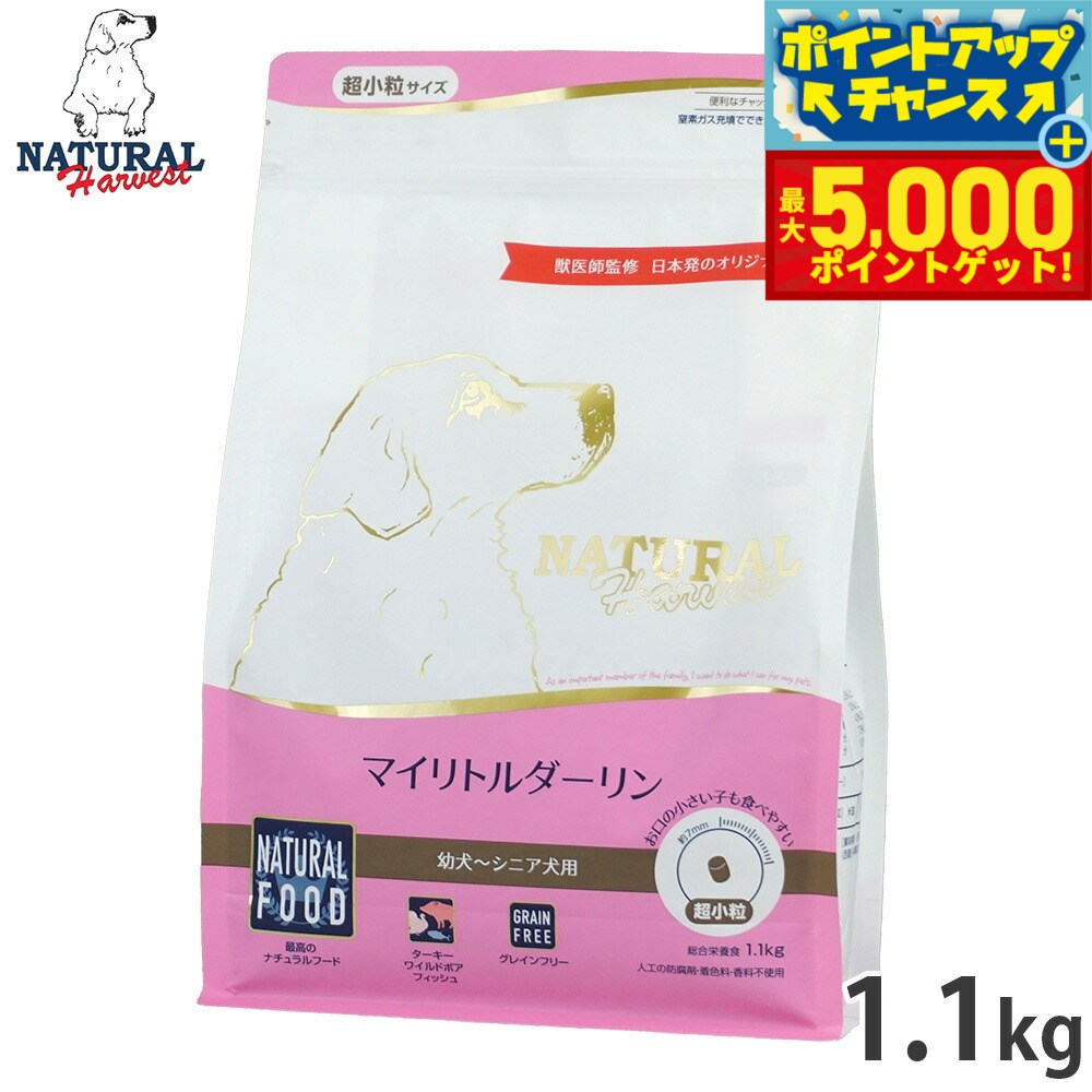 【最大5000ptバック!16日まで!】ナチュラルハーベスト ドッグフード マイリトルダーリン 幼犬〜シニア犬用 超小粒 グレインフリー 1.1kg 無添加 日本専用フード 犬