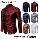 カジュアルシャツ 長袖 メンズ トップス スタンドカラー マオカラ 風 ドレスシャツ 光沢感 ペイズリー 総柄 おしゃれ かっこいい ドレッシー パー