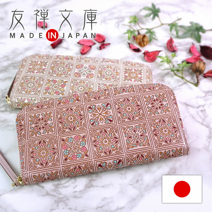ラウンドファスナー長財布 財布 レディース 本革 文庫革 日本製 国産 小銭入れあり 手染め 手描き かわいい マカナ 婦人 上品 友禅文庫 母の日 プレゼント クリスマス【コンビニ受取対応商品】