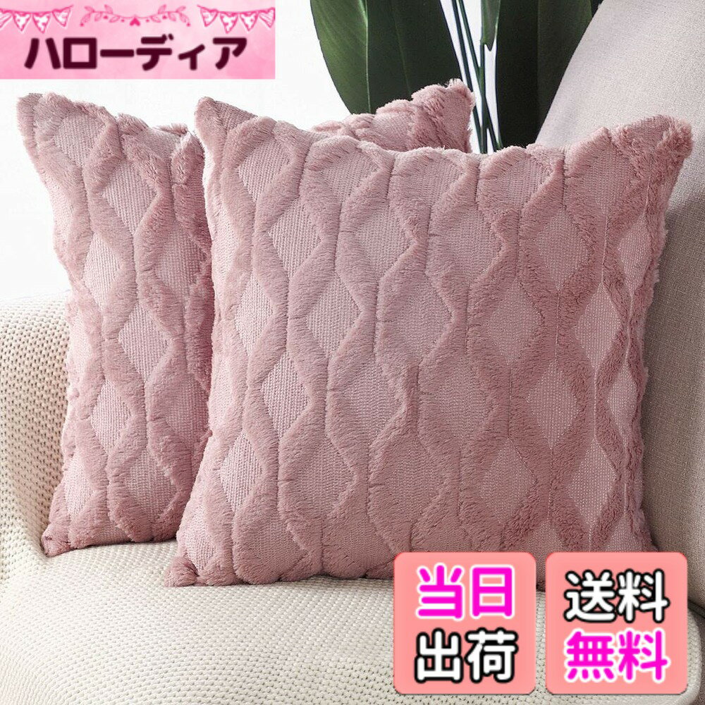 【送料無料】Madizz クッションカバー 2枚セット 柔らかい ぬいぐるみ ショートウール ベルベット 装飾的な 枕カバー 贅沢 スタイル クッションケース ソファ用 寝室用 色:ピンク、サイズ:50cmx50cm(2 枚組)