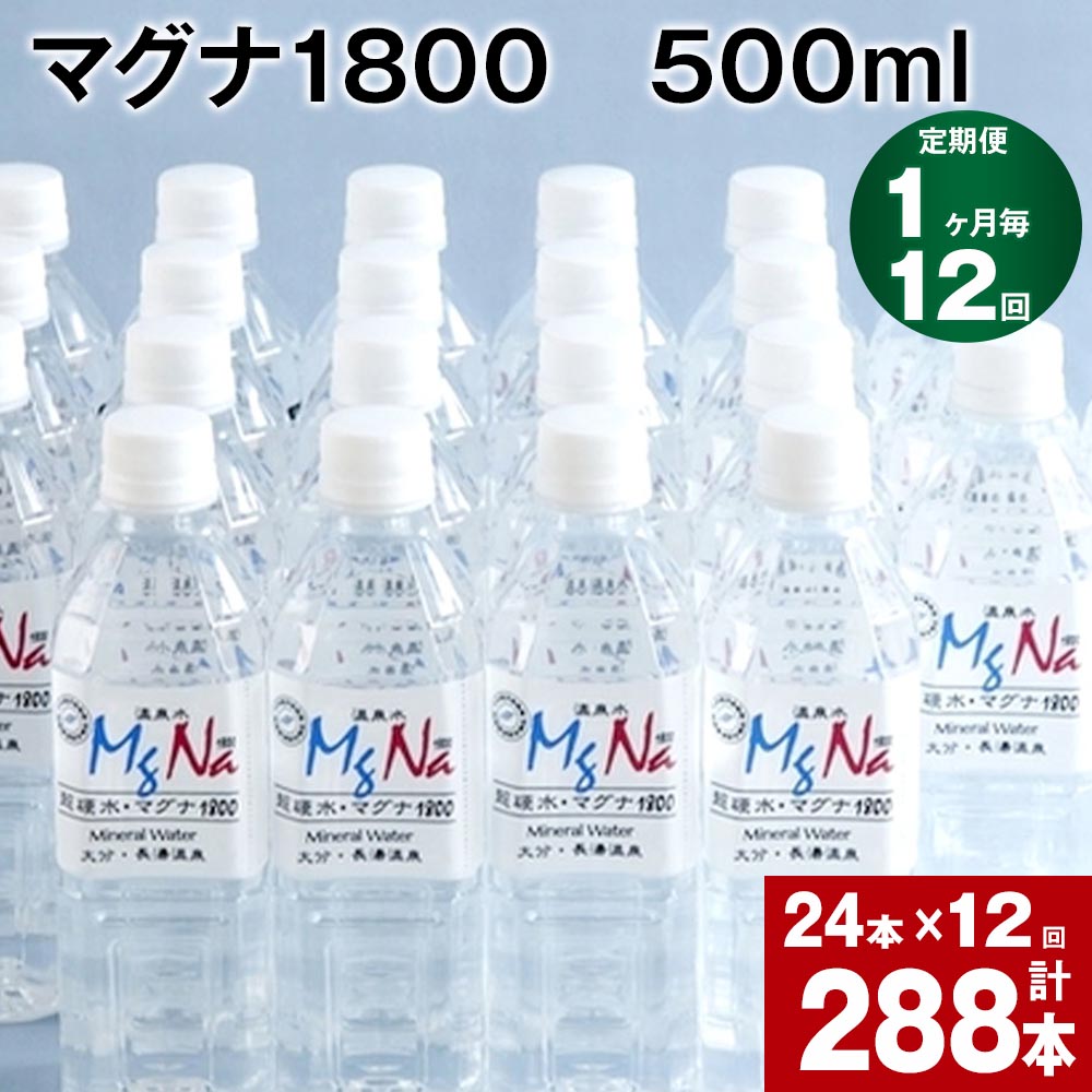【ふるさと納税】【定期便】【1ヶ月毎 12回】「マグナ1800」500ml 計288本(24本×12回) 計144L 水 飲料水 硬水 ミネラルウォーター シリカ 温泉水 マグネシウム 弱アルカリ ケイ素 サルフェート 硬度900 ph8.6 長湯温泉 大分県