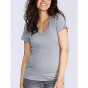マザーフッドマタニティ レディース カットソー トップス Maternity V-Neck Side-Ruched Short Sleeve Tee - Motherhood Heather grey