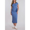 マザーフッドマタニティ レディース ワンピース トップス Maternity Crew Neck Short Sleeve Side Tie Midi Dress - Motherhood Moonlight blue