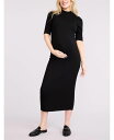 【送料無料】 マザーフッドマタニティー レディース ワンピース トップス Women's Mock Neck 3/4 Sleeve Ribbed Maxi Dress - Motherhood Maternity Black