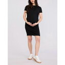 マザーフッドマタニティ レディース ワンピース トップス Maternity Crewneck Short Sleeve Side Ruched Bodycon Mini Dress - Motherhood Black