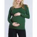マザーフッドマタニティ レディース カットソー トップス Maternity Square Neck Rib Knit Long Sleeve Tee - Motherhood Green pastures