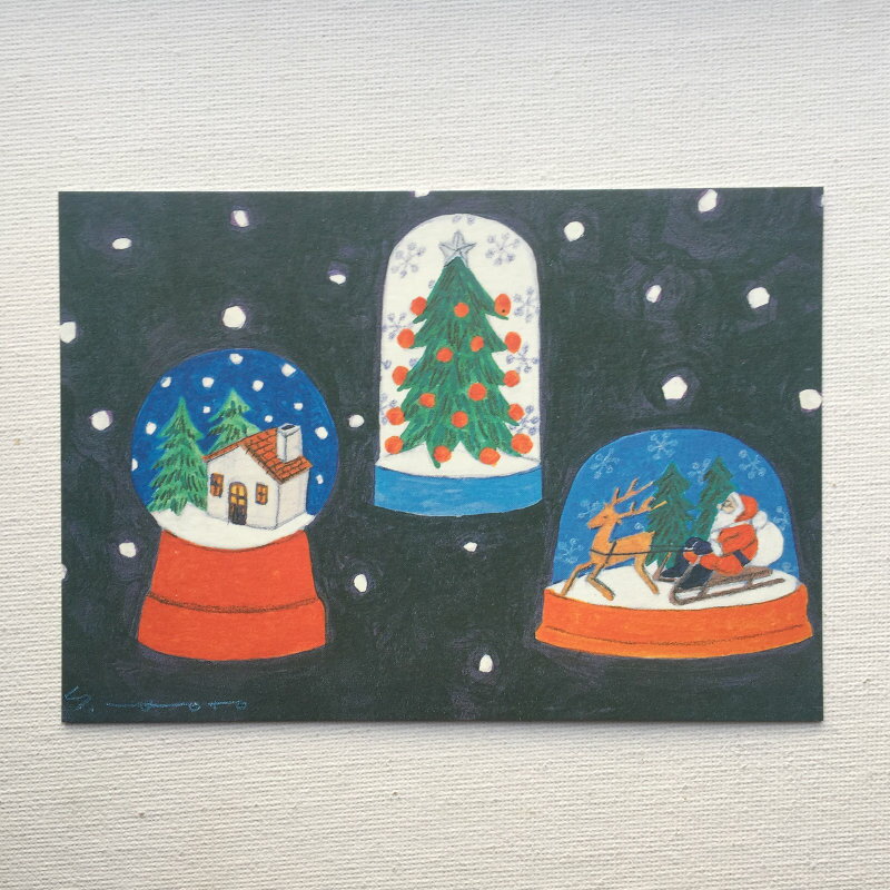 Yoko Matsumoto マツモトヨーコ ポストカード クリスマス スノードーム ブラック
