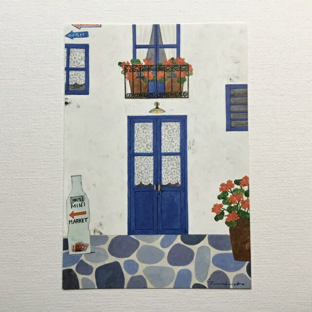 Yoko Matsumoto マツモトヨーコ ポストカード 白い壁 ブルーのドア ゼラニウム