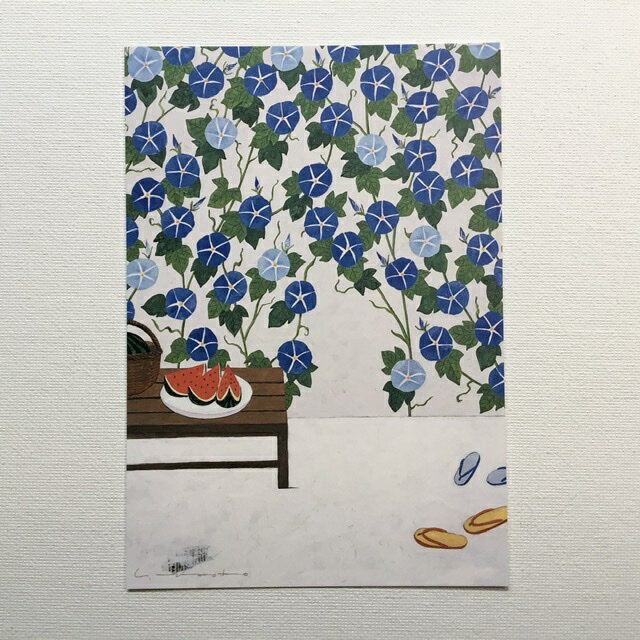 Yoko Matsumoto マツモトヨーコ ポストカード ブルーのあさがお スイカ ベンチ バスケット ビーチサンダル