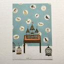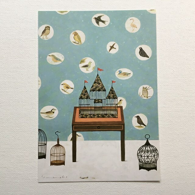 Yoko Matsumoto マツモトヨーコ ポストカード ローテーブル 鳥柄の壁 4個の鳥かご