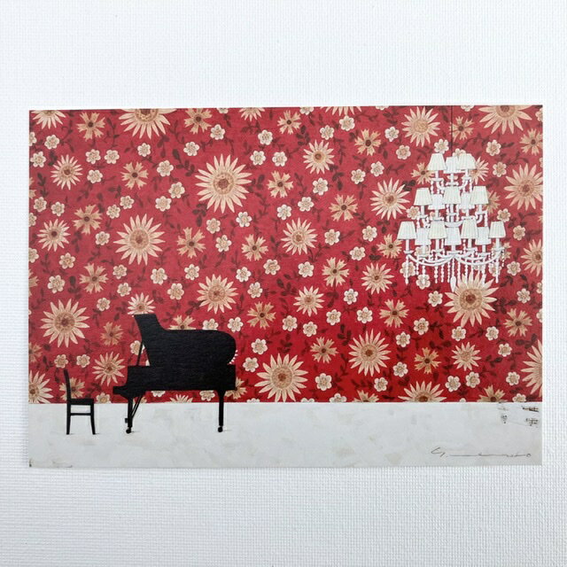 Yoko Matsumoto マツモトヨーコ ポストカード 「静かに響く」グランドピアノ 花柄の壁紙 シャンデリア