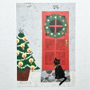 Yoko Matsumoto マツモトヨーコ ポストカード クリスマス 赤いドア 黒ねこ ツリー リース