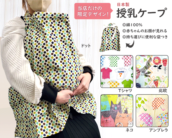 授乳ケープ ポンチョ 授乳服 授乳カバー 巾着袋付き ソフトワイヤー入り 日本製 おしゃれ かわいい オリジナル ネコ 北欧 ドット Tシャツ アンブレラ プレママ マタ二ティ 妊婦 出産準備 出産祝い プレゼント