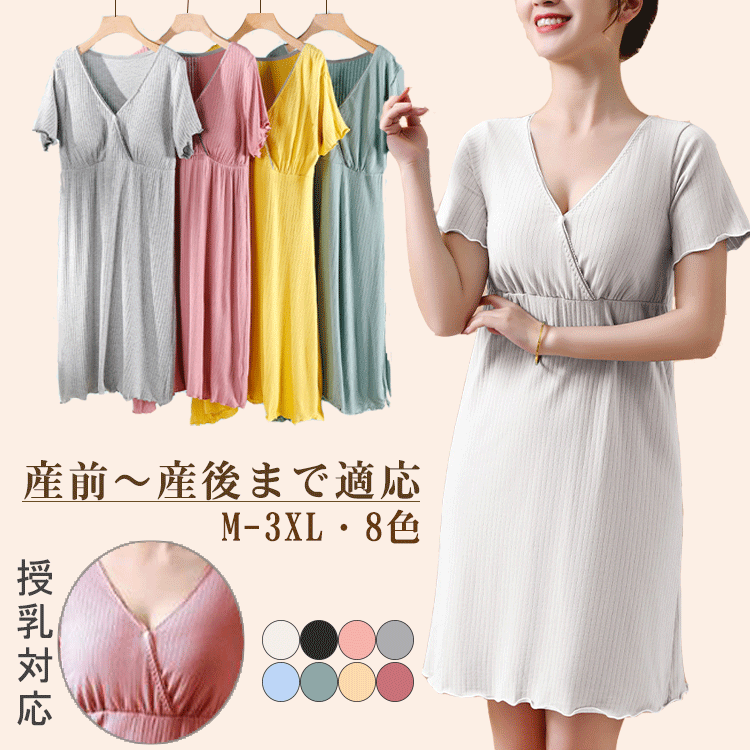 レディース マタニティ パジャマ ワンピース 授乳対応 ルームウェア ナイトウェア 半袖 授乳口付き マタニティパジャマ 授乳服 妊婦服 ストレッチ 春 夏 秋 妊婦 ママ 産前 産後 哺乳 入院 出産準備 吸汗 通気 M L XL XXL XXXL