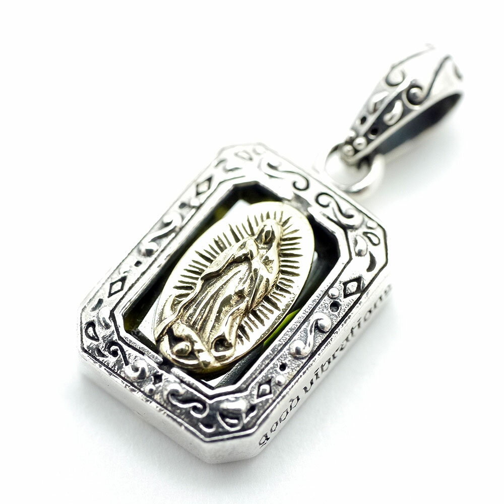 bi シルバー925 金色グアダルーペの聖母マリア スクウェアボックス ゴールド ペンダントトップ ネックレス メンズ GOOD VIBRATIONS グッドバイブレーションズ クラシカル クリスチャン キリスト教 シルバーアクセサリー