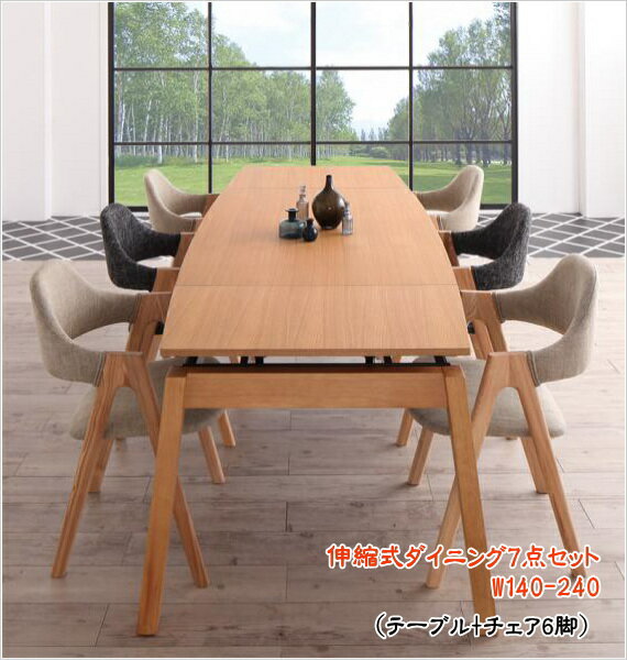 北欧デザイン スライド伸縮ダイニングセット MALIA マリア 7点セット(テーブル+チェア6脚) W140-240 「ダイニング7点セット テーブル コンパクト エクステンションテーブル スライド式 簡単伸縮テーブル ダイニングチェア 椅子」