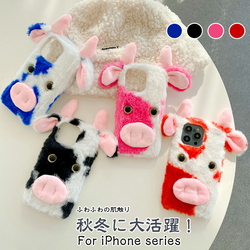 iPhone 14ケース iphone 13ケース iphone 11ケース iphone 12 ふわふわな アイホン xr xs x 7 8 ぬいぐるみ もふもふ iPhone14 pro max ふわふわ iphone13ケース iphone SE 第2世代 牛の形 乳牛 もこもこ 暖かい 牛 動物 アニマル アイフォン ケース 秋冬 かわいい 癒し効果