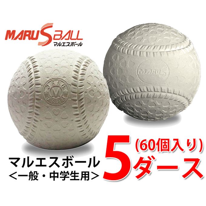 マルエスボール 野球 軟式ボール M号 5ダース 60個入り 公認軟式野球ボール 15710D 一般 中学生 高校生 試合球 検定球