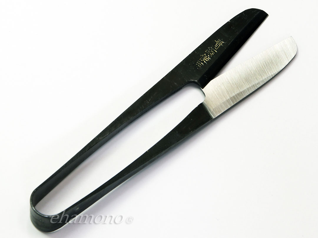 鋼材に青鋼を使用、熟練職人が丹念に鍛えた握りハサミです。 大変良く切れ、またいつまでも切れ味が長持ちします。 サイズは最も一般的で使いやすい全長105mm。 生地を傷めないように先が丸くなった、爪丸型です。 ポケットなどに入れても、先を突かない「爪丸型」は、繊維工場などで工場内を持ち歩いて使われる方にも、便利で好評を頂いています。 全長:105mm、刃長36mm、重さ約23g、青二鋼