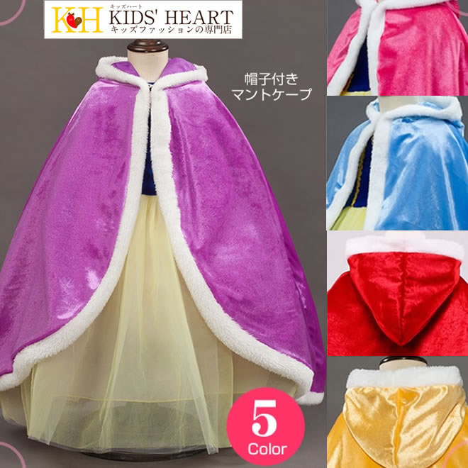 帽子付きマントケープ ハロウィン クリスマス キッズ プリンセス 子供 衣装 仮装 キャラクター 誕生日 プレゼント ボレロ 厚地 ベロア 防寒 裏地付き プリンセスケープ コスプレ 送料無料