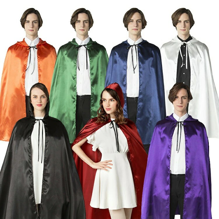 楽天ランキング2冠獲得!マント サテン 12色 3サイズ フード 学園祭 文化祭 仮装 コスプレ ハロウィン クリスマス ドラキュラ 吸血鬼 魔法 ローブ ゴシック ステージ 舞台 ショート ロング タキシード仮面 27mnt01