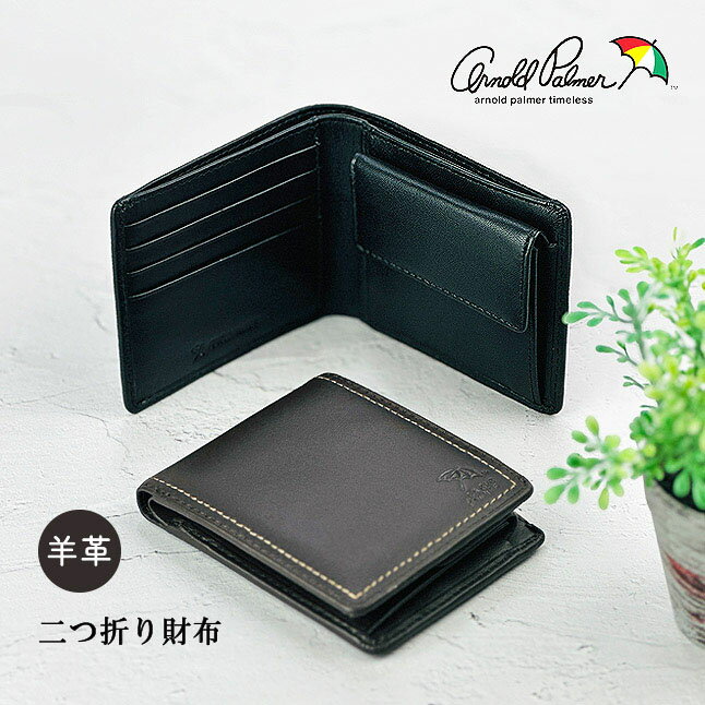 ■4ap3652 ARNORD PALMER アーノルドパーマー ダブルステッチ 二つ折り財布 ブランドロゴのアンブレラの型押しと、ステッチがおしゃれな二つ折り財布。 高級感あふれるレザー素材を使用。 お札入れは2部屋あり、レシートやチケットなどの整理もしやすい。 専用の化粧箱付きなのでプレゼントにもおすすめです♪ サイズ:約 W11×H9×D2.5cm 重 量:約 63g 素 材:羊革 生産国:バングラデシュ カラー:ブラック、ブラウン [アイテム] 財布 サイフ さいふ 二つ折り財布 折り財布 ショートウォレット [対象] メンズ 男性 紳士用 お父さん 父親 おじいちゃん 祖父 夫 旦那 彼氏 社会人 大人 20代 30代 40代 50代 60代 [用途] 旅行 普段使い 日常使い お買物 ショッピング おでかけ 通勤 プレゼント ギフト 誕生日 バースデー Birthday クリスマス Xmas Christmas バレンタインデー 父の日 敬老の日 還暦祝い お祝い [イメージ・関連] おしゃれ オシャレ お洒落 ブランド シンプル クール 使いやすい 便利 人気 売れ筋 おすすめ / ロゴ型押し ステッチ 牛革 本革 革財布 革小物 レザー ブラック 黒 クロ ブラウン 茶 チャ ラッピング無料 ラッピング対応 ご注意 ※商品写真はできる限り実物の色に近づけるよう徹底しておりますが、 お使いのモニター設定、お部屋の照明等により実際の商品と色味が異なる場合がございます。ご了承ください。 ※記載しておりますサイズ・重量は測定方法により若干異なる場合があります。 ※出来る限り新しく入荷した商品の画像を掲載しておりますが、製造時期により予告なく仕様変更される場合がございます。 ※在庫数の管理につきましては本商品は複数サイトで販売をしております関係上、アクセスが集中して場合には、ご注文完了後でもわずかな入力の時間差で在庫切れとなる場合がございます。その際はお客様にはご迷惑をおかけする場合がございますが、ご了承くださいませ。 「世界の子どもたちにワクチンを」 詳しくはこちら→「サイフとカバン」では商品をご購入頂くと、売上の一部を「世界の子どもにワクチンを 日本委員会(JCV)」へ寄付する活動を行っております。■ご注意 ※商品写真はできる限り実物の色に近づけるよう徹底しておりますが、お使いのモニター設定、お部屋の照明等により実際の商品と色味が異なる場合がございます。ご了承ください。 ※記載しておりますサイズ・重量は測定方法により若干異なる場合があります。 ※出来る限り新しく入荷した商品の画像を掲載しておりますが、製造時期により予告なく仕様変更される場合がございます。 ※在庫数の管理につきましては本商品は複数サイトで販売をしております関係上、アクセスが集中して場合には、ご注文完了後でもわずかな入力の時間差で在庫切れとなる場合がございます。その際はお客様にはご迷惑をおかけする場合がございますが、ご了承くださいませ。