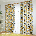 ポップでレトロなミッドセンチュリースタイルの遮光カーテン スリーピースヌーピー オレンジ 幅100×丈135cm (1枚入)