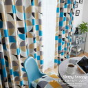 ポップでレトロなミッドセンチュリースタイルの遮光カーテン スリーピースヌーピー ブルー 幅100×丈200cm (1枚入)
